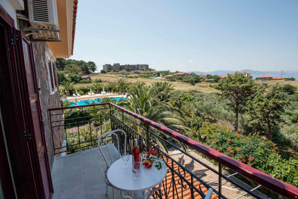 This studio with mini kitchen and bathroom is on the second floor of the guest house with a view towards the sea, garden and castle.