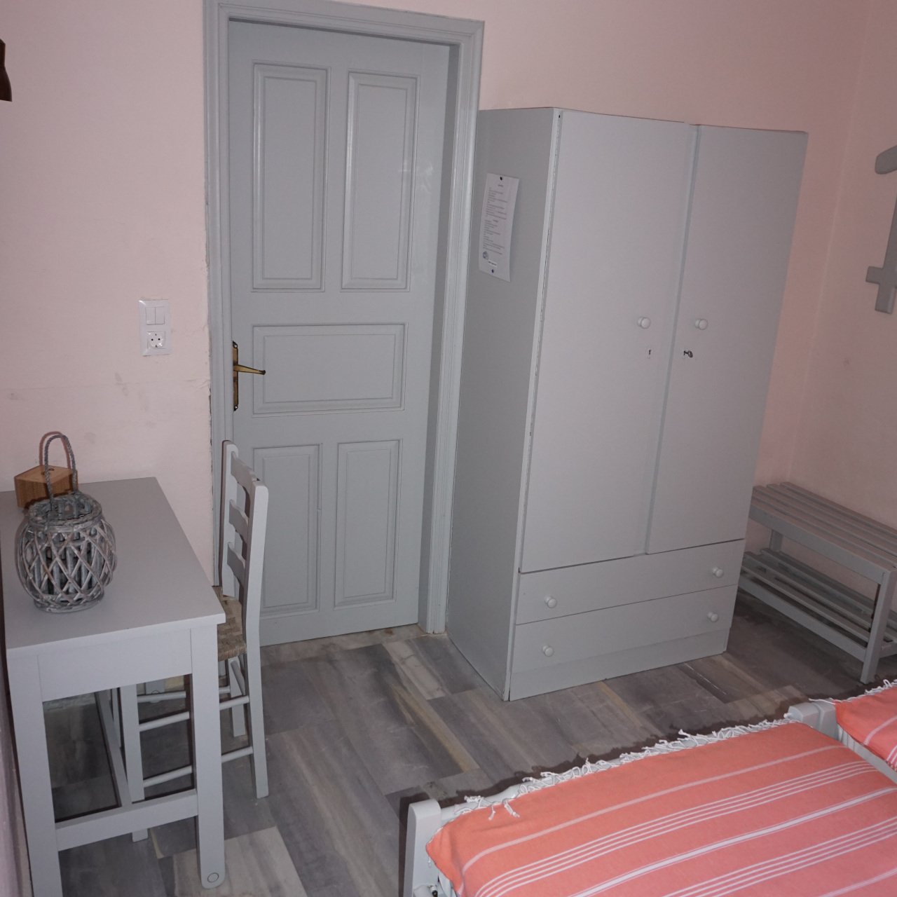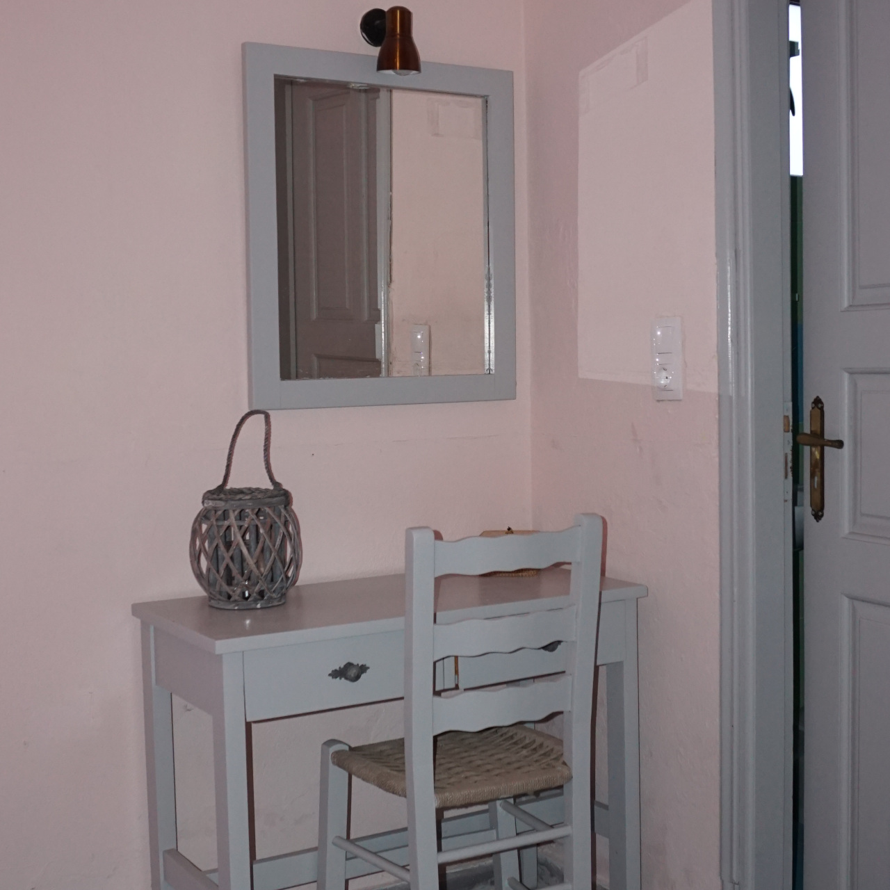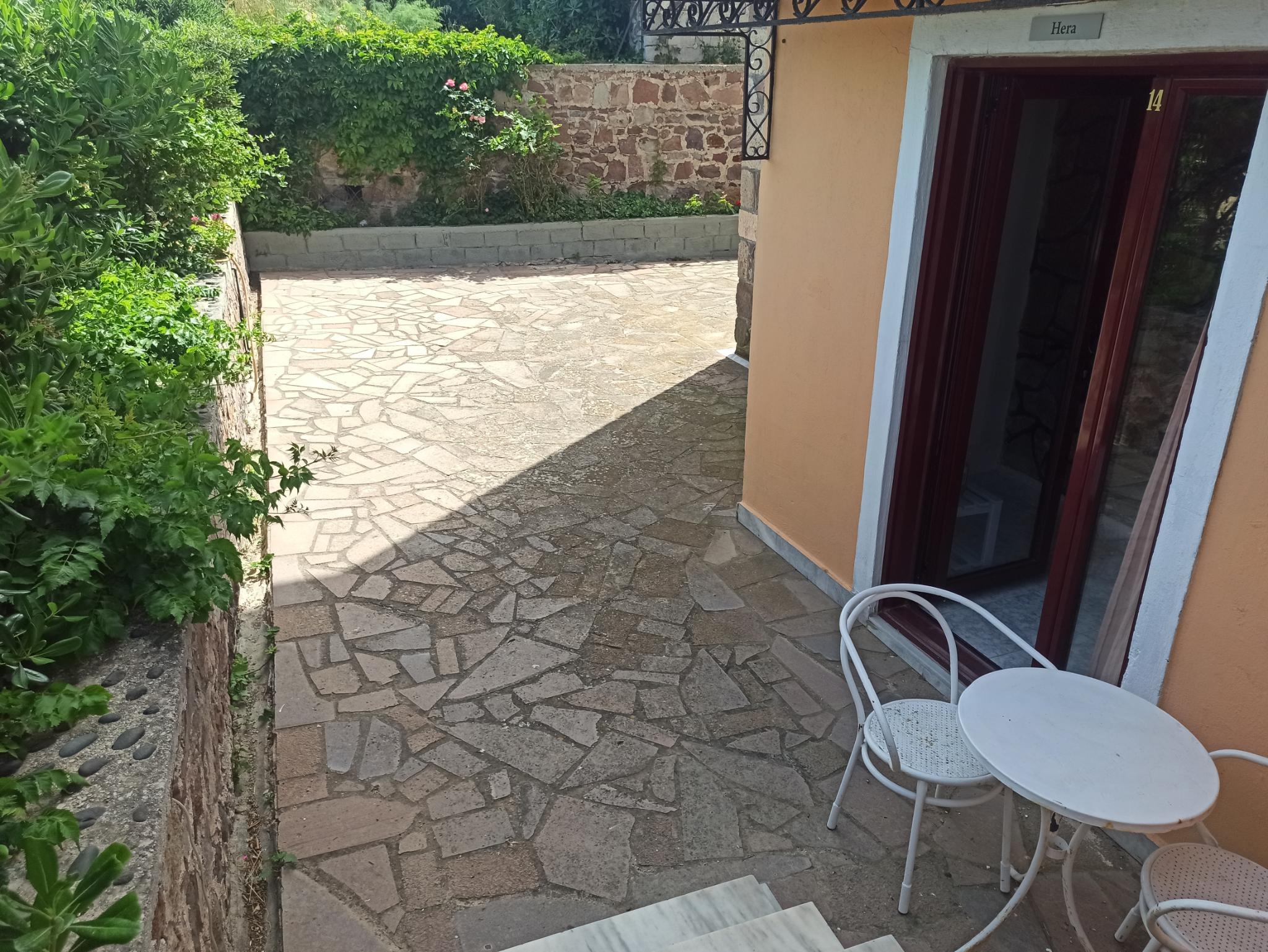 This studio with a mini kitchen and a bathroom is located on the ground floor of the guest house with a view towards the garden and the sea.