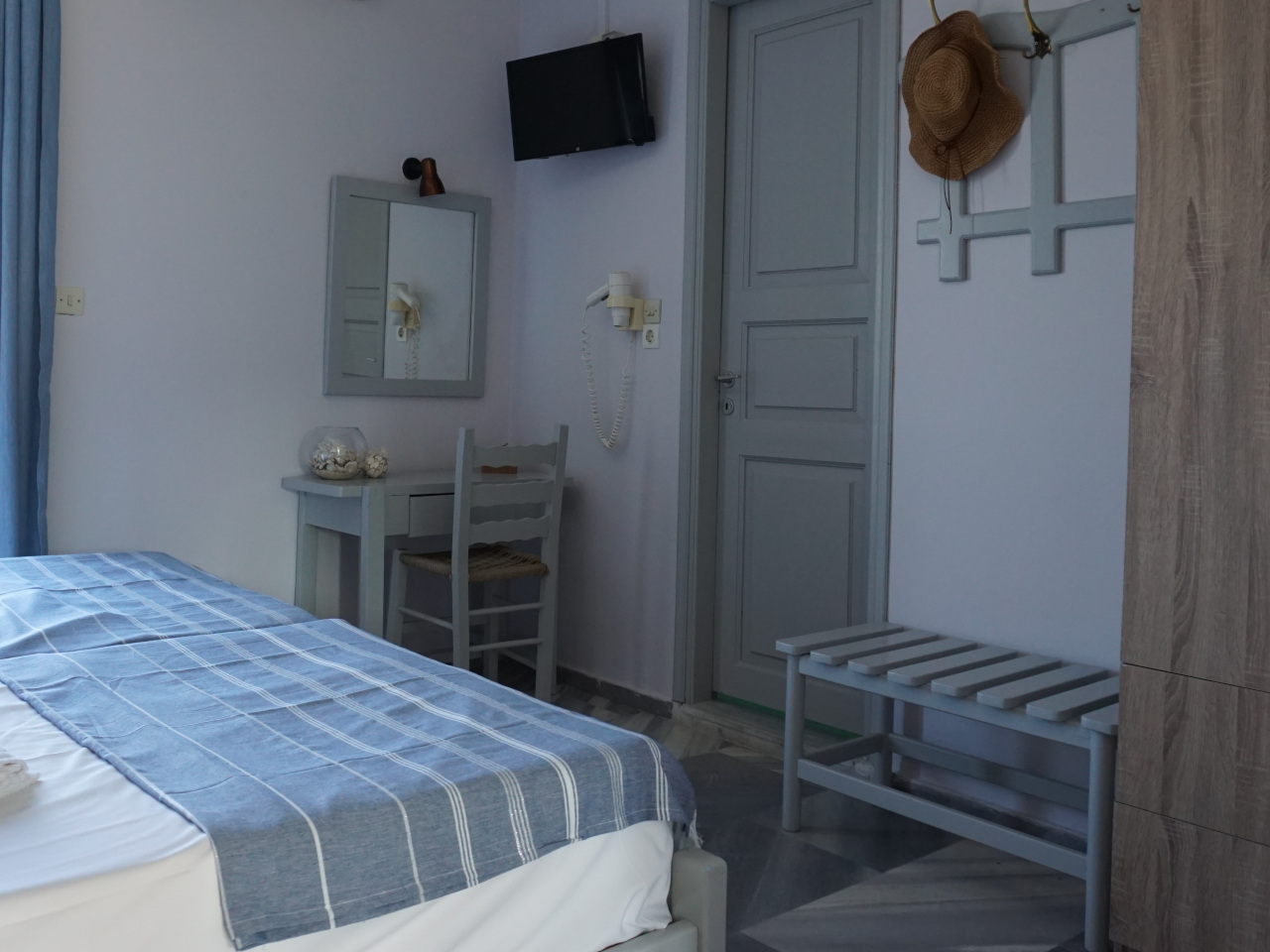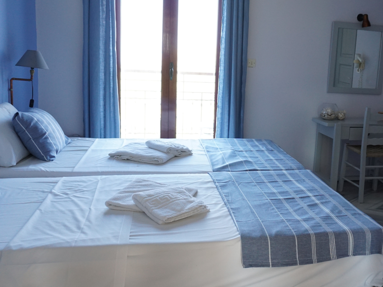 Dieses Doppelzimmer mit Bad befindet sich im zweiten Obergeschoss des Gästehauses mit Blick Richtung Meer.