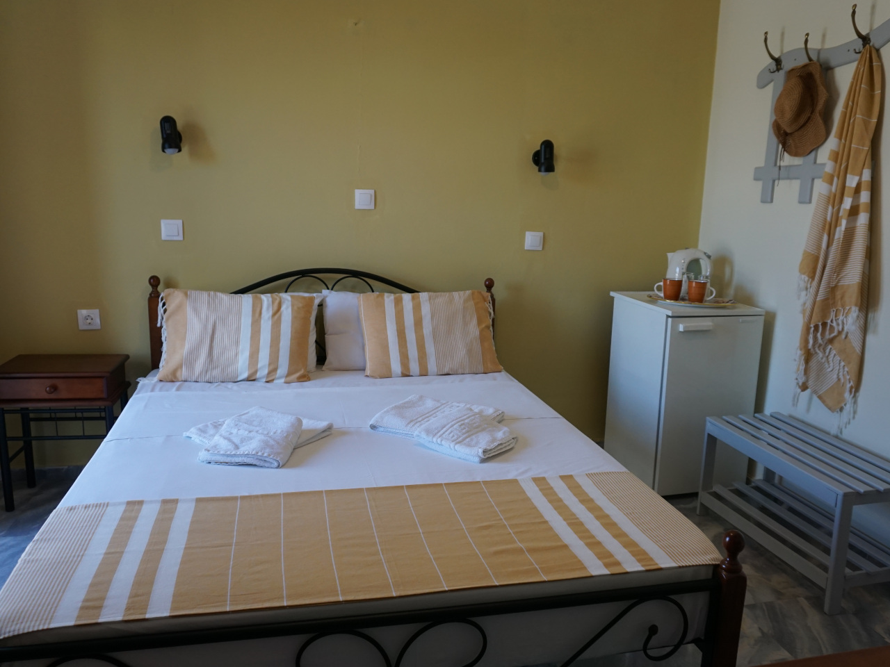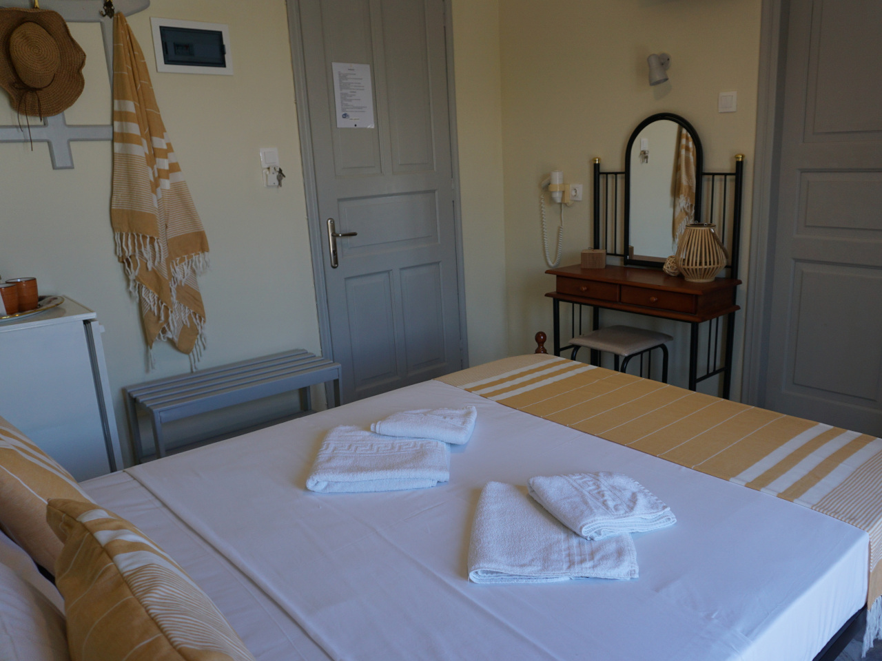 - Ausstattungen: Bettwäsche, Frisiertisch, Handtücher, Strandtücher, Wasserkocher