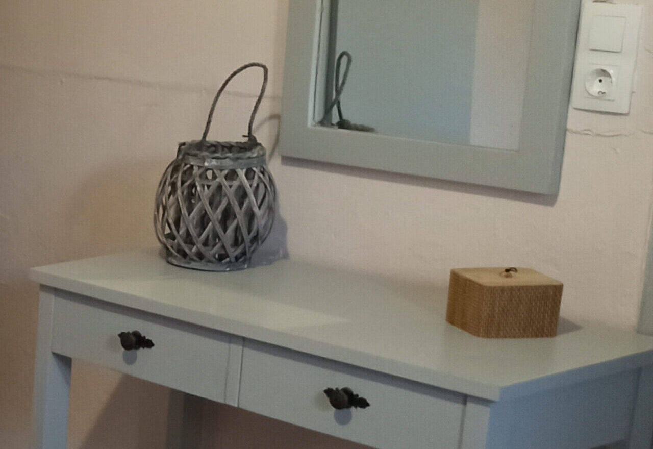 Dieses Doppelzimmer mit Bad befindet sich im Erdgeschoss des Gästehauses mit Blick Richtung Garten.