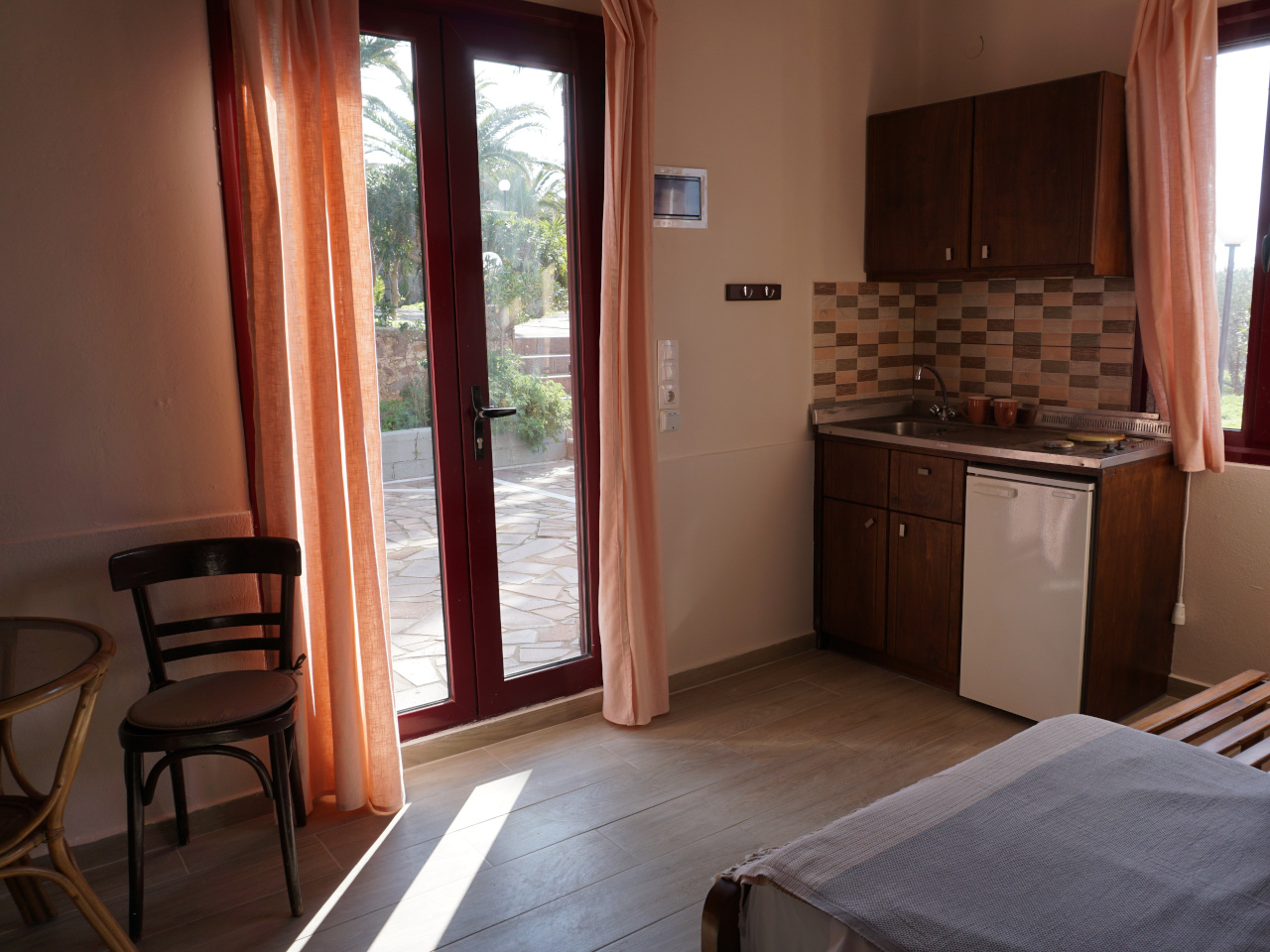 - Ausstattungen: Bettwäsche, Handtücher, Miniküche, Strandtücher, Terrasse, Tisch mit 2 Stühlen, Wasserkocher